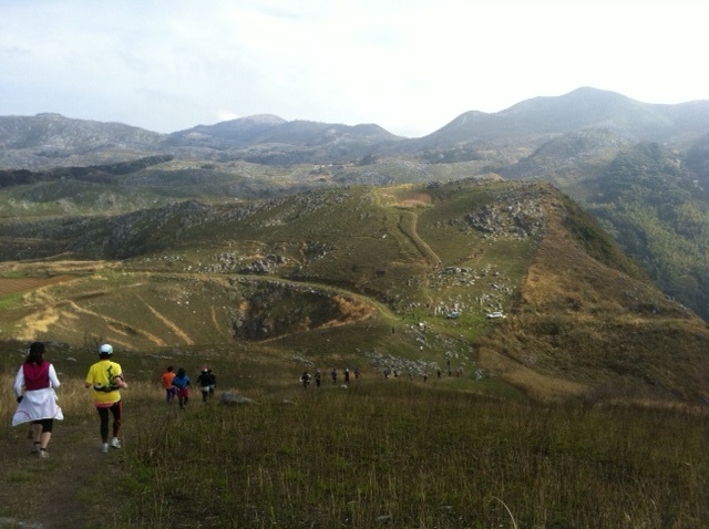 今回レース中、レースなのに足を止めて平尾台の景色
