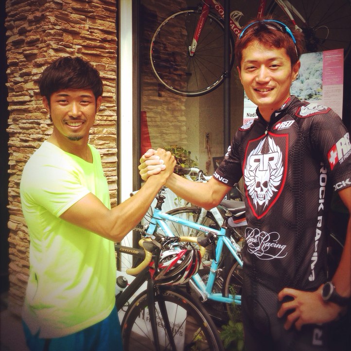 Nadiで RUNのレッスンを行うSATORUと、ロードバイクのレッスンを行い