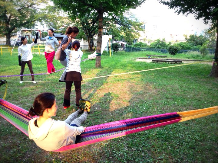 集中が切れた時には、ほっこりハンモックで休憩