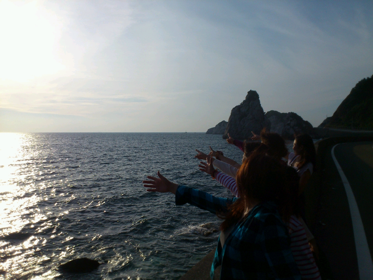 帰路につくころ、もうすぐ沈む太陽のひかりが反射する水面に感動。