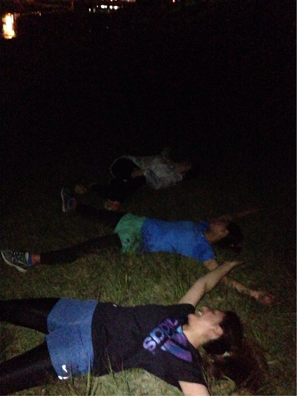 芝生に寝転がり身体全身で月からのパワーを頂きます