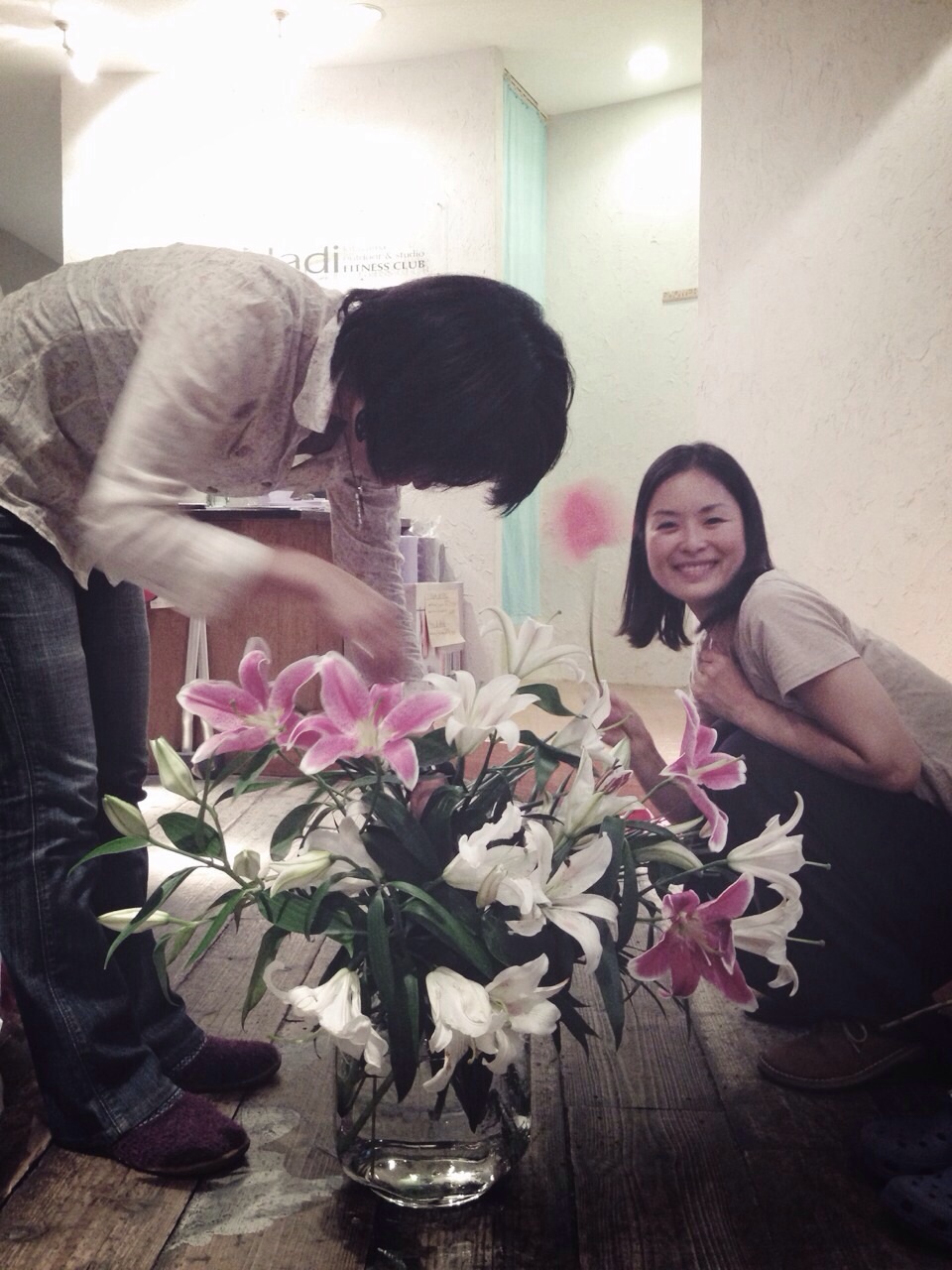 なにやらNadiではたくさんのお花からもパワーいただいております。5周年パーティーにいただいたお花のお手入れ中♩