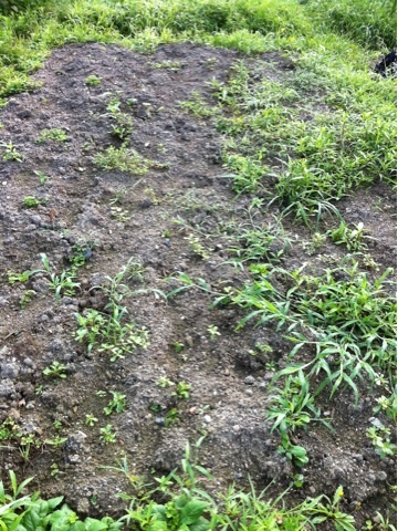 最後に乾燥を防ぐ為に刈った草を畝に敷いて今日の作業は終了!