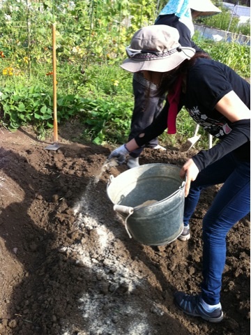 耕した後に、米ぬかと堆肥を混ぜてから畝を作ります
