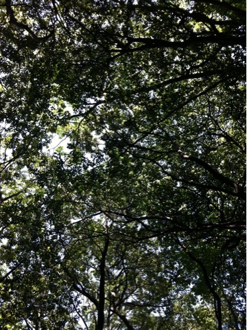 夕陽に透けて輝く森に心が踊ります。