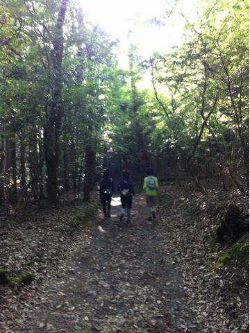 朝の木漏れ日を浴びてトレイルランニング