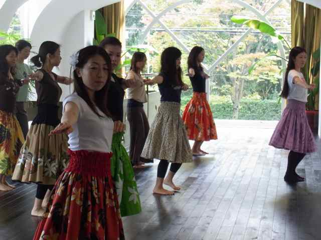 キレイな紅葉が浮かび上がるスタジオでフラ
