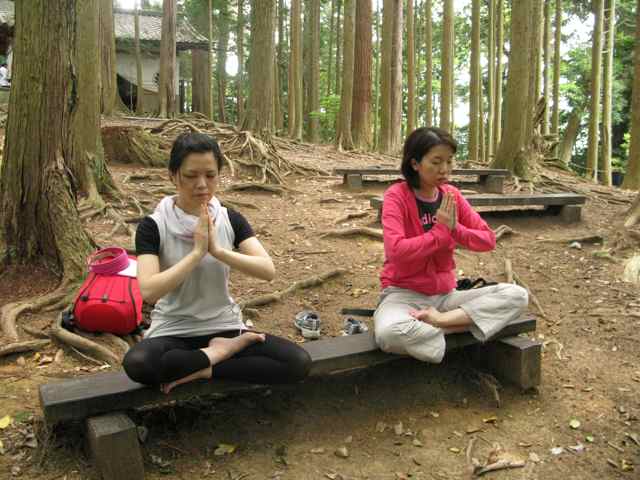 「護法魔王尊影向の杉」と呼ばれる大杉権現付近でヨガ/瞑想を行いました。